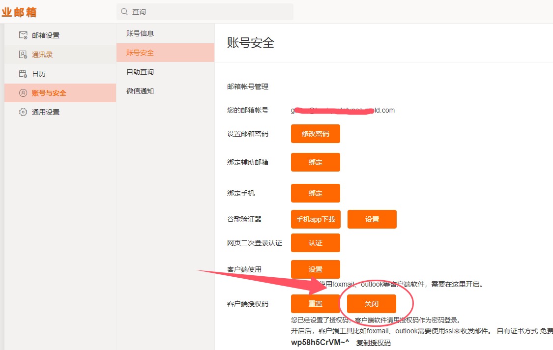 有時(shí)客戶端提示錯(cuò)誤,是開啟了“客戶端授權(quán)碼”,請(qǐng)“郵箱用戶”網(wǎng)頁登錄(不是管理員),這里關(guān)閉下。